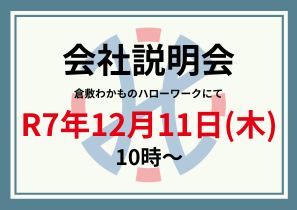 会社説明会のお知らせ/倉敷わかものハローワークにて開催(12/11開催)